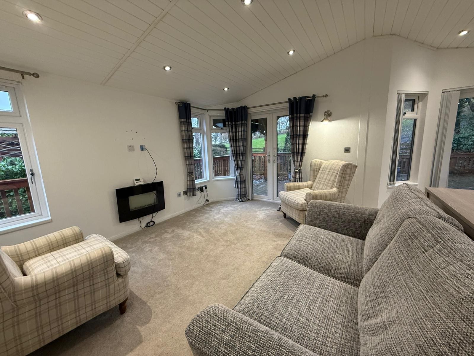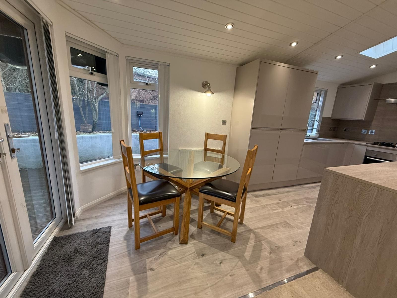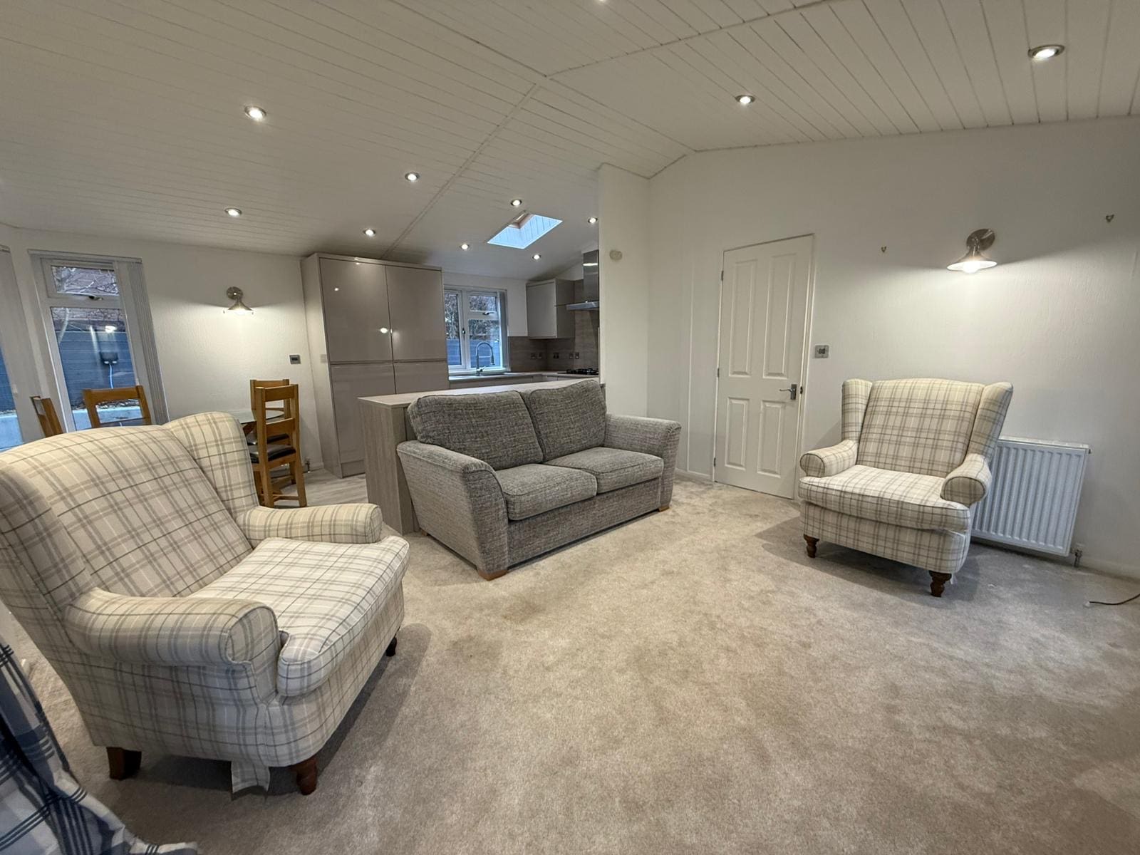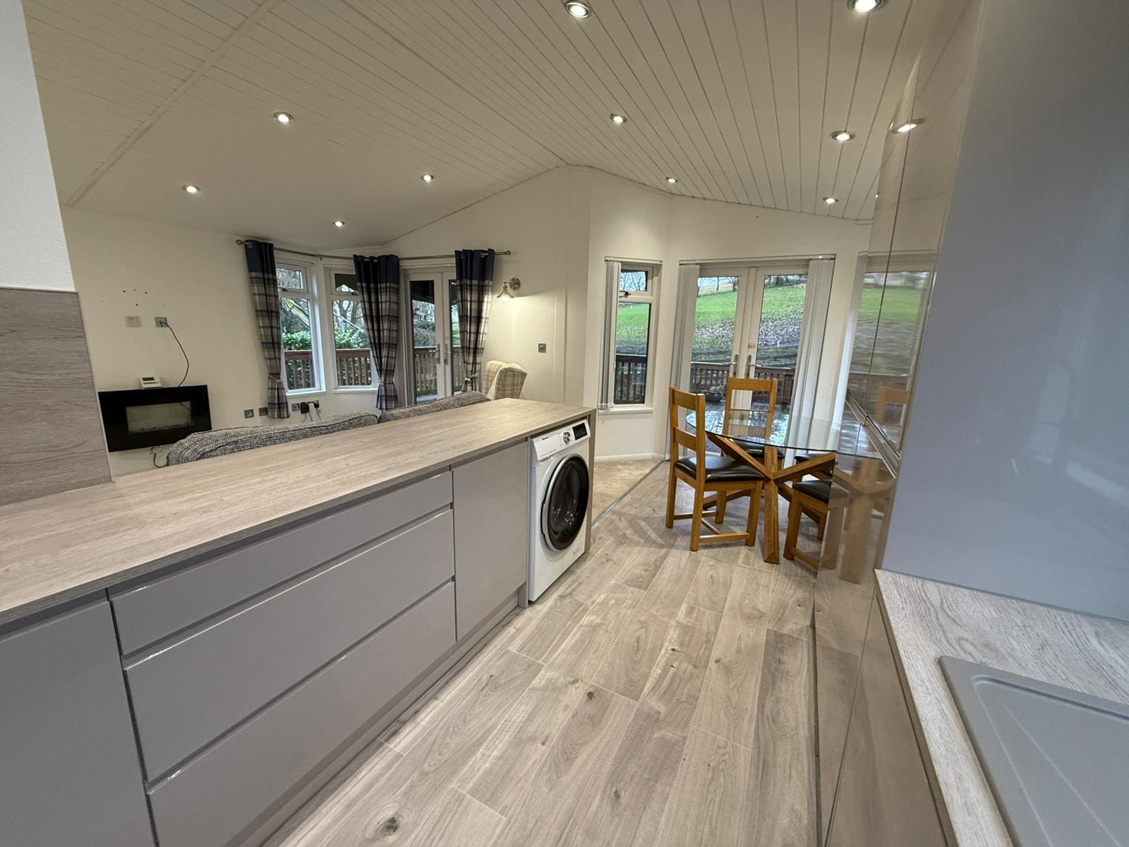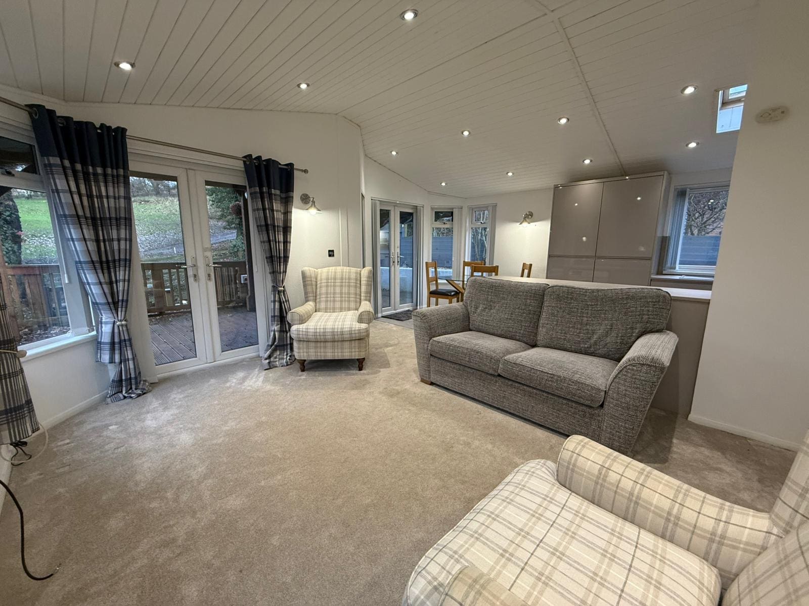 Large open plan kitchen, Lounge & Dining room with front patio doors