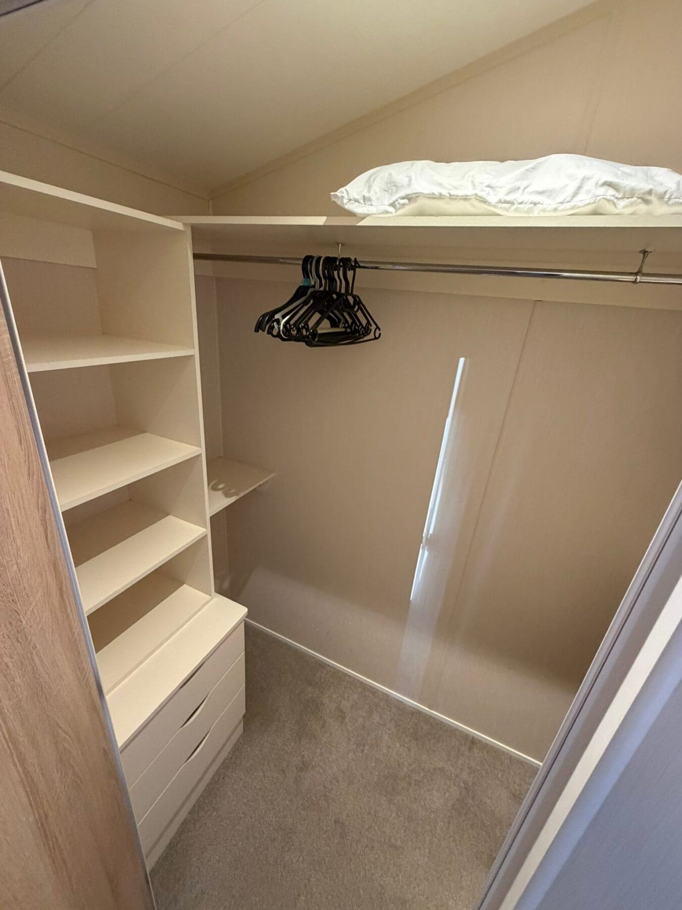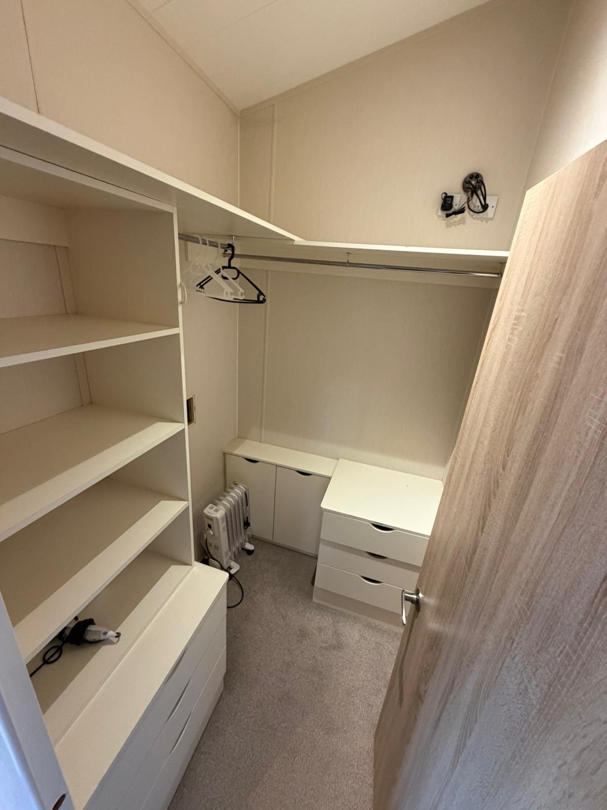 2nd bedroom with fitted cupboards, draws & a walk in wardrobe